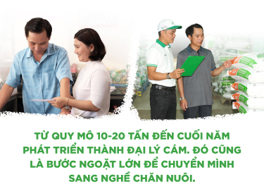 Anh Lân Vương chia sẻ: “Ngày đầu chỉ dám nhập về 50 bao cám, chịu lời ít hơn những nơi khác, vậy mà hết sạch trong vòng 1 tiếng. Khi bà con bắt đầu biết đến, có ngày tôi bán được cả trăm bao. “Thừa thắng xông lên”, từ quy mô 10-20 tấn/ năm, nhờ sự ủng hộ của vợ, tôi quyết tâm phát triển đại lý cám”.