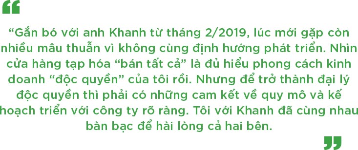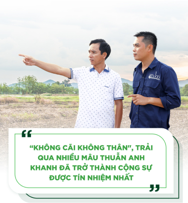 Từ nhân viên hỗ trợ, anh Khanh dần trở thành người bạn đồng hành hợp ý nhờ tinh thần máu lửa và tính cách gần gũi, chịu khó. Xem nhau như anh em trong nhà, anh Lân Vương chia sẻ: “Hôm nào có anh Khanh qua, cả nhà không ngại ngồi ăn cơm với nhau. Từ những bữa cơm thân mật như vậy, anh em dần hiểu nhau, cộng tác và gắn bó đến tận bây giờ. Người ta vẫn bảo “không cãi không thân", trải qua nhiều mâu thuẫn anh Khanh đã trở thành cộng sự được anh Khanh tín nhiệm nhất, điển hình như việc anh Khanh tính lương cho nhân viên của anh Lân như “người một nhà". Hay những nhiệm vụ khó khăn như đợt vừa rồi anh Lân xây dựng trại 3000m2 cũng là anh Khanh “bao tất" khâu quản lý vật tư và nhân công xây dựng. Những việc như thế này, người nhà có khi còn chưa tin tưởng giao phó được, nhưng với anh Khanh thì anh Lân hoàn toàn tin tưởng.”