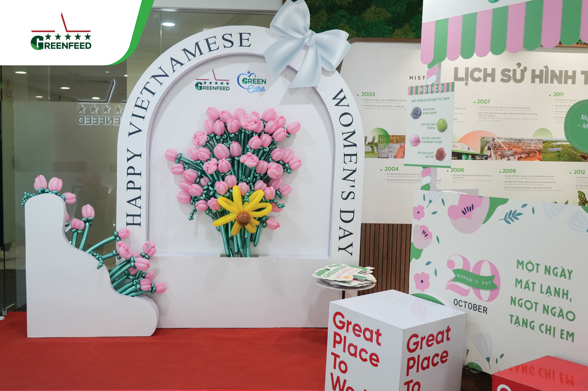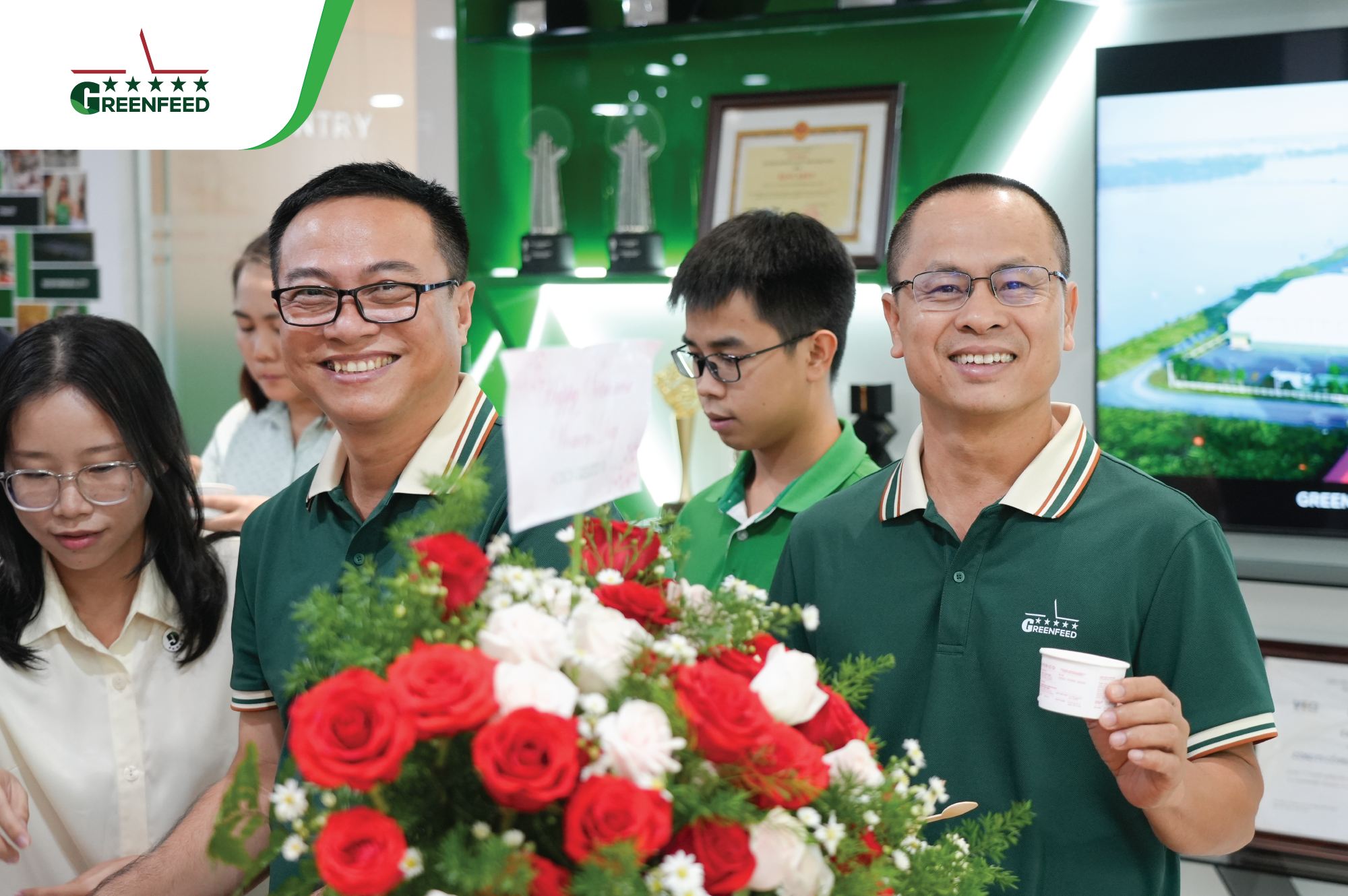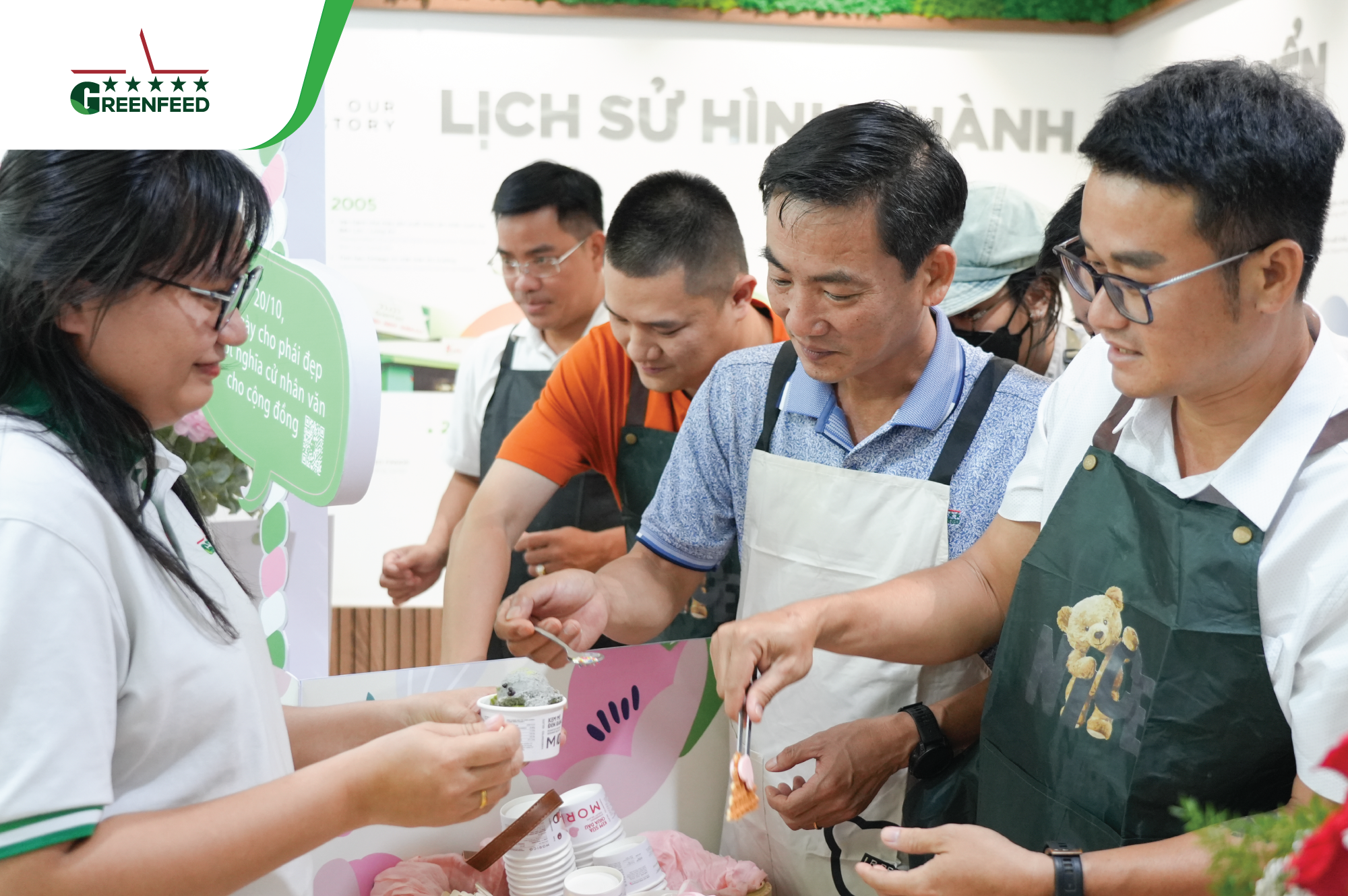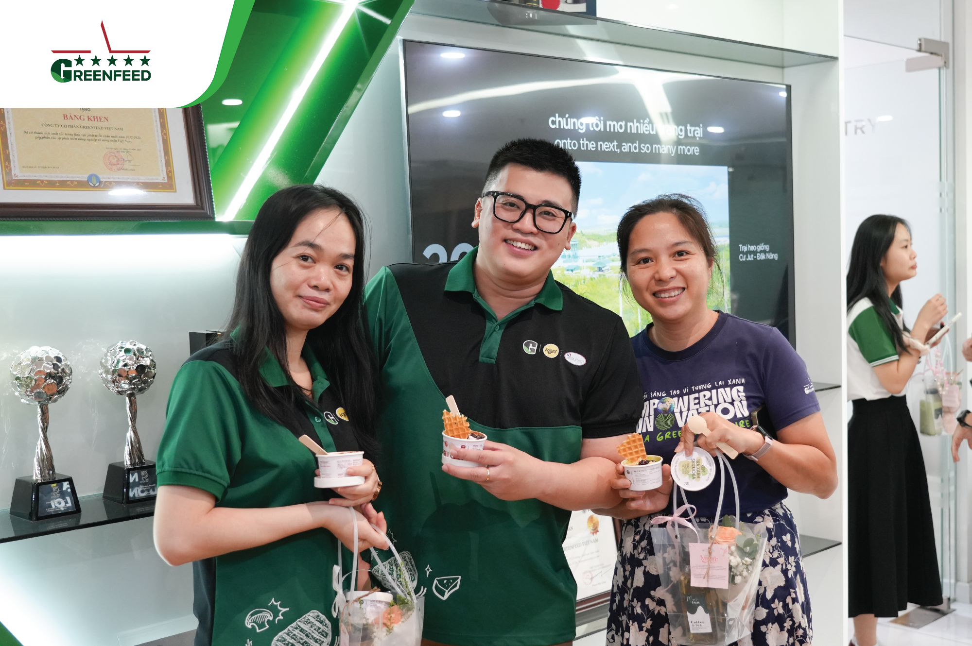 At the head office, our male leaders and GREENFEEDERS set aside their daily work, put on aprons to serve ice cream and hand out flowers to their female colleagues. Meanwhile, across all sites, workspaces came alive with vibrant decorations, loving messages, and thoughtfully prepared gifts — each carrying a touch of appreciation for GREENFEED’s incredible female warriors.