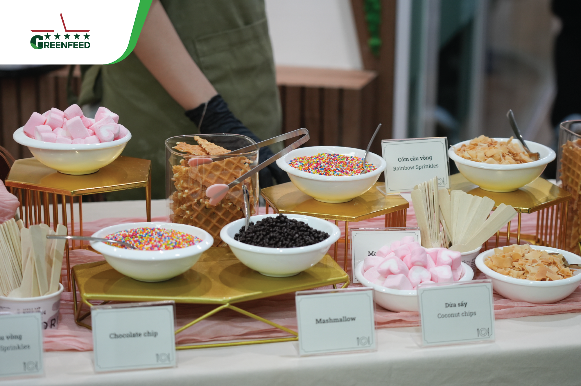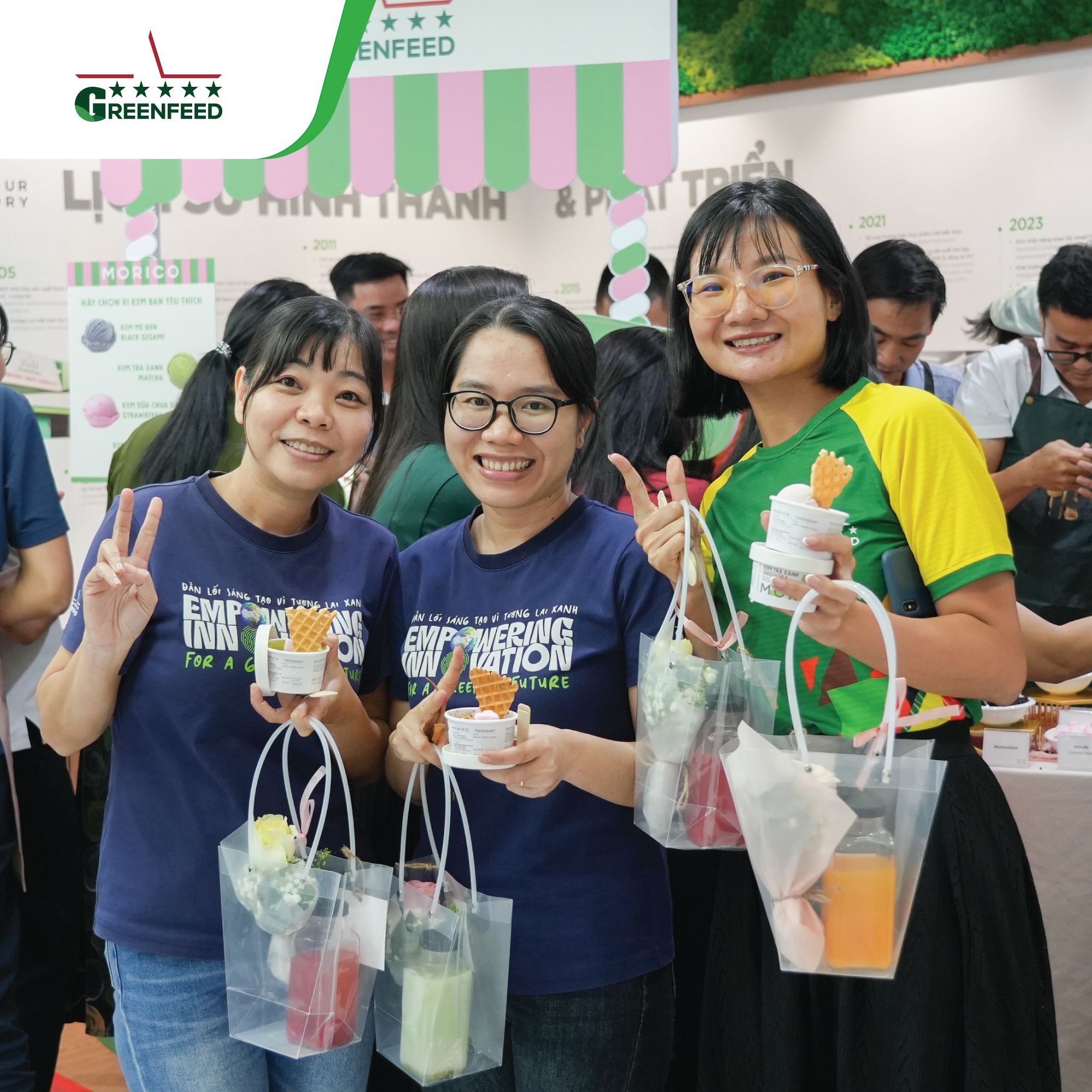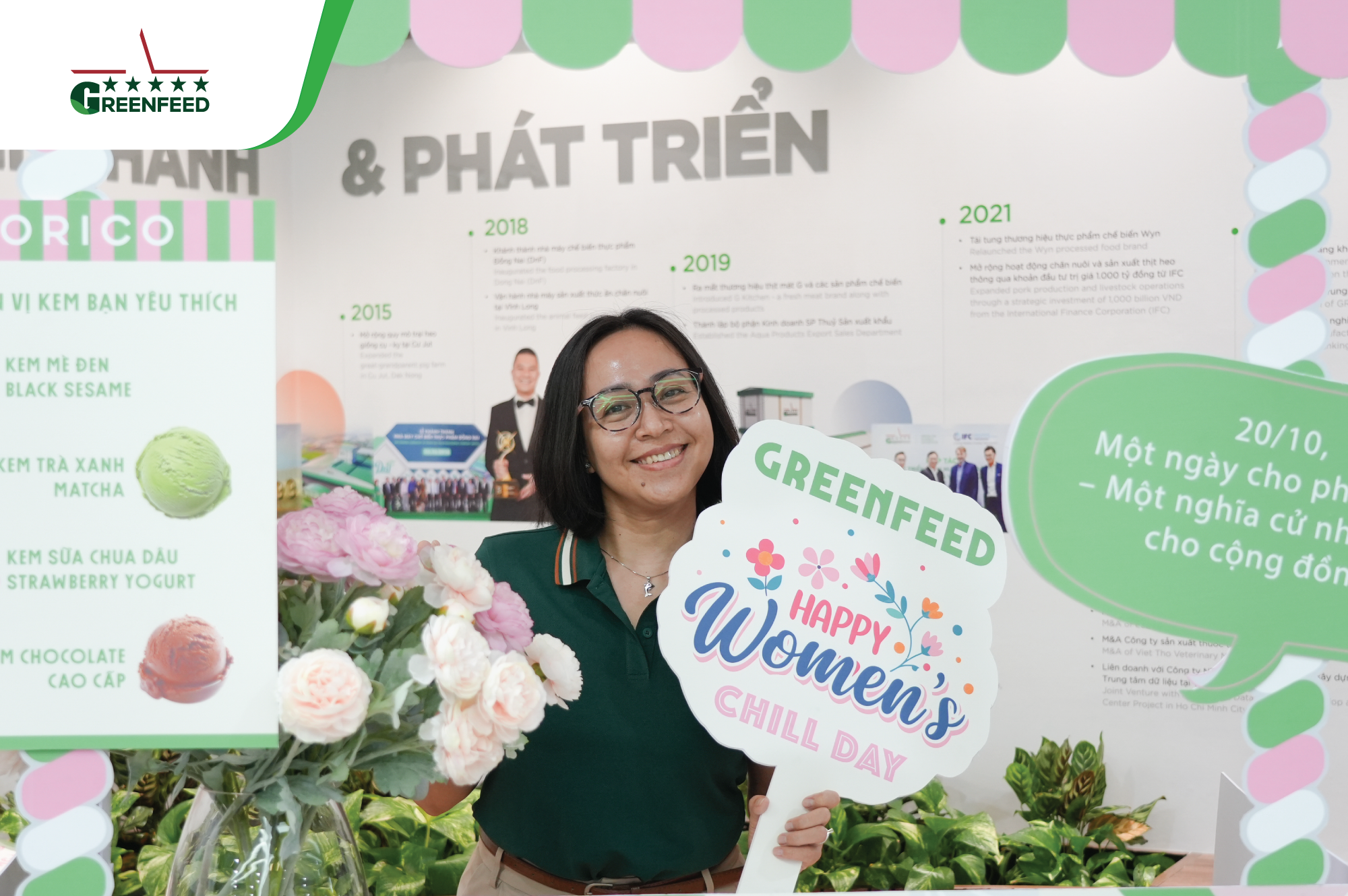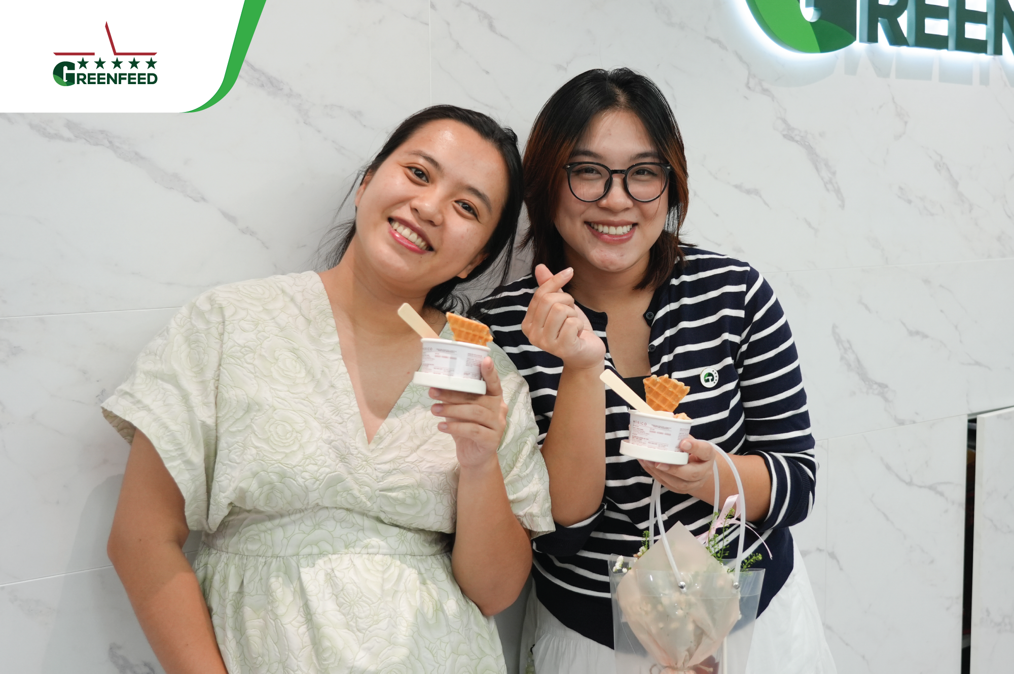 At the head office, our male leaders and GREENFEEDERS set aside their daily work, put on aprons to serve ice cream and hand out flowers to their female colleagues. Meanwhile, across all sites, workspaces came alive with vibrant decorations, loving messages, and thoughtfully prepared gifts — each carrying a touch of appreciation for GREENFEED’s incredible female warriors.