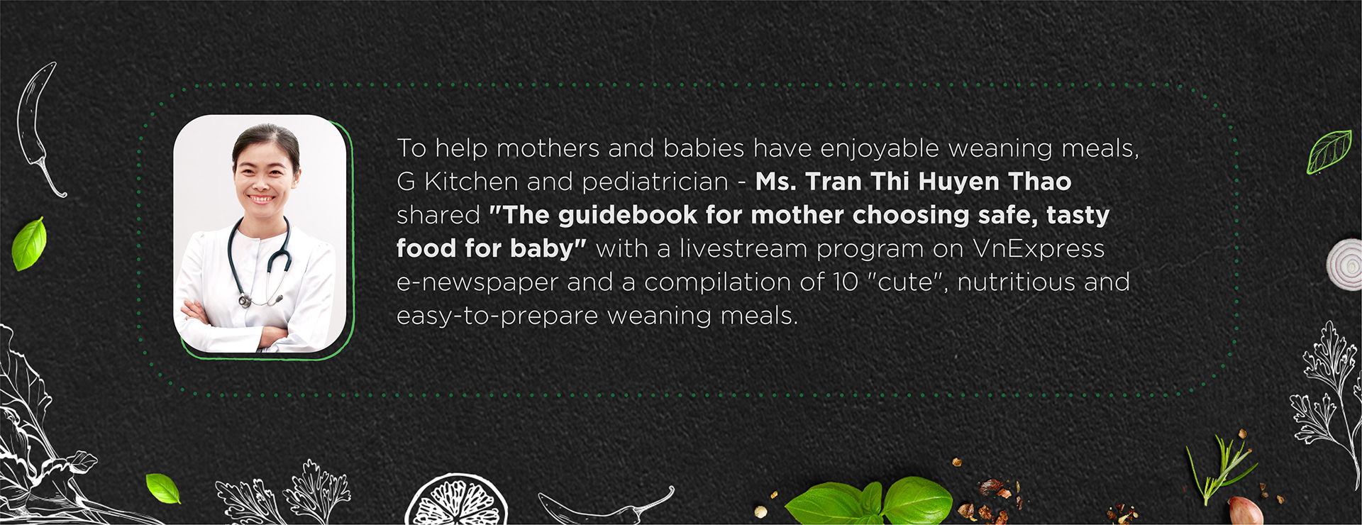 Aiming to bring safe, tasty, genuine products to make the meals of millions of Vietnamese families more complete. G Kitchen focus closely on mothers with weaning children because G Kitchen understands that every mother would want the best, safe and tasty food, with known origins, to give their children a healthy diet and ensure the safety of their developing digestive system.