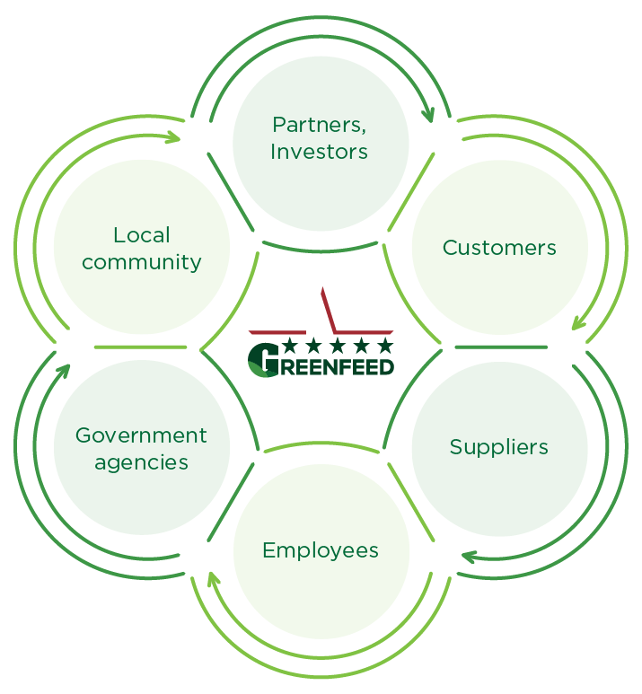 GREENFEED ensures engagements of stakeholders, such as Shareholders, Investors, Suppliers, Employees, Government agencies and Local Communities are based on mutual respect and understanding. To establish dependable and long-lasting partnerships, the Group promotes accountability through open communication and ensures that interests of all parties are aligned.