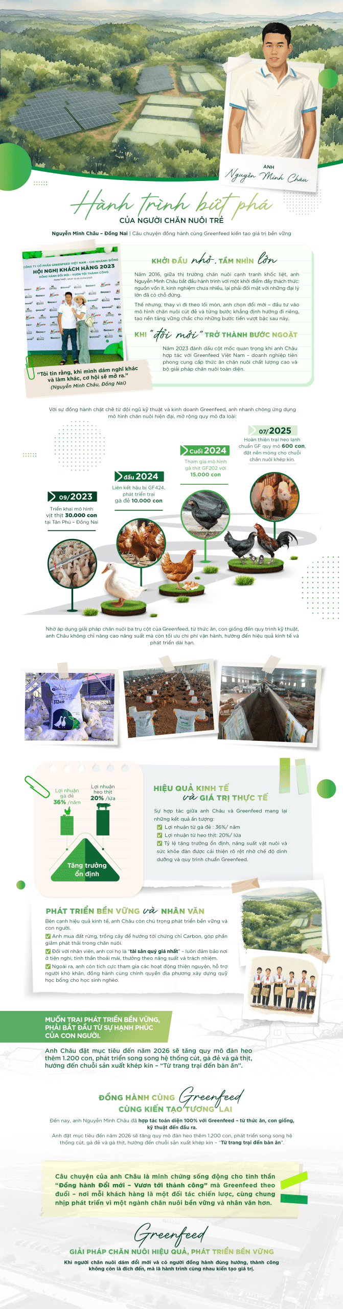 Năm 2016, giữa thị trường chăn nuôi cạnh tranh khốc liệt, anh Nguyễn Minh Châu bắt đầu hành trình với một khởi điểm đầy thách thức: nguồn vốn ít, kinh nghiệm chưa nhiều, lại phải đối mặt với những đại lý lớn đã có chỗ đứng.